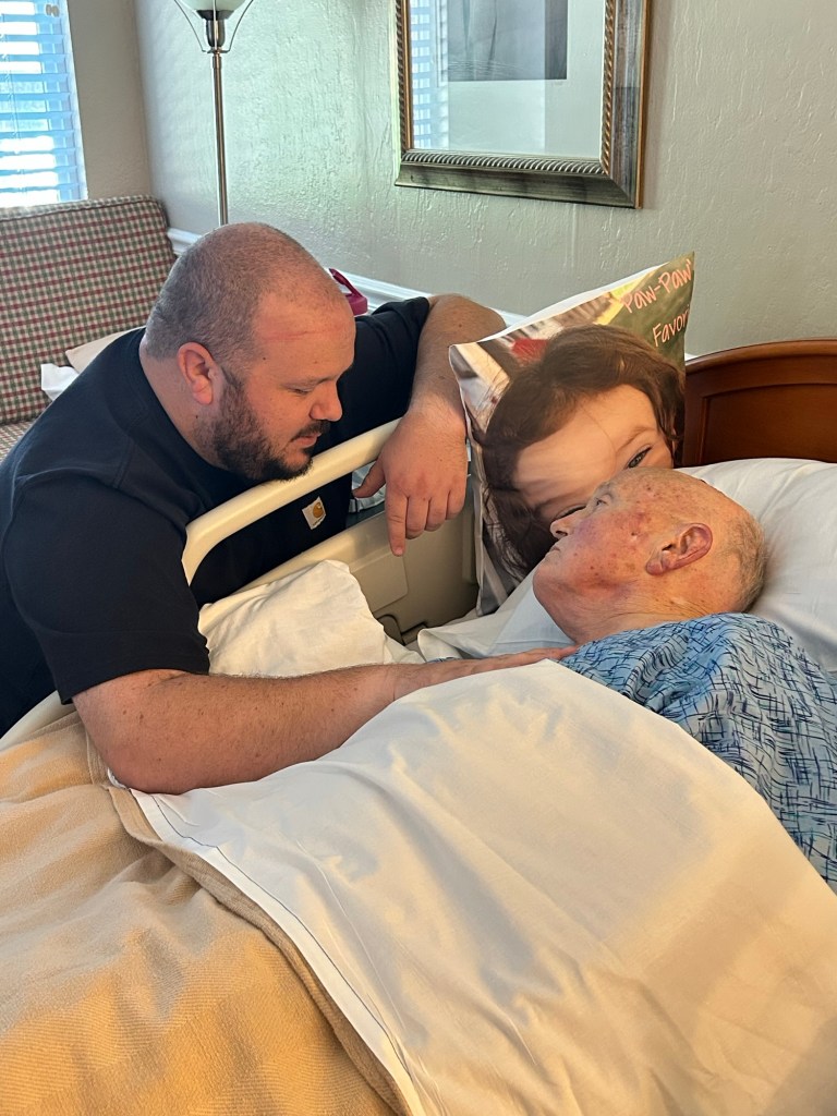 Those words just echoed in my mind. This was it. My dad was leaving this world, but I was staying here. She asked if I wanted her to put the phone to his ear. I really wish I could tell you what I said. I just tried to be loud so he could hear me without his hearing aids. But I know I told him one last time how much loved him and how grateful I was that God chose him to be my dad and Aurora’s Paw-Paw. As I got quiet, he took a big breath I could hear over the phone.